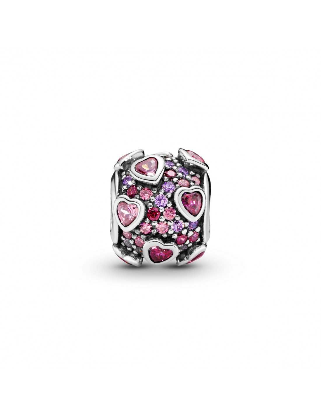 Charm PANDORA Explosión de Amor en plata de primera ley, adornado con circonitas cúbicas rojas, rosas y fucsias.