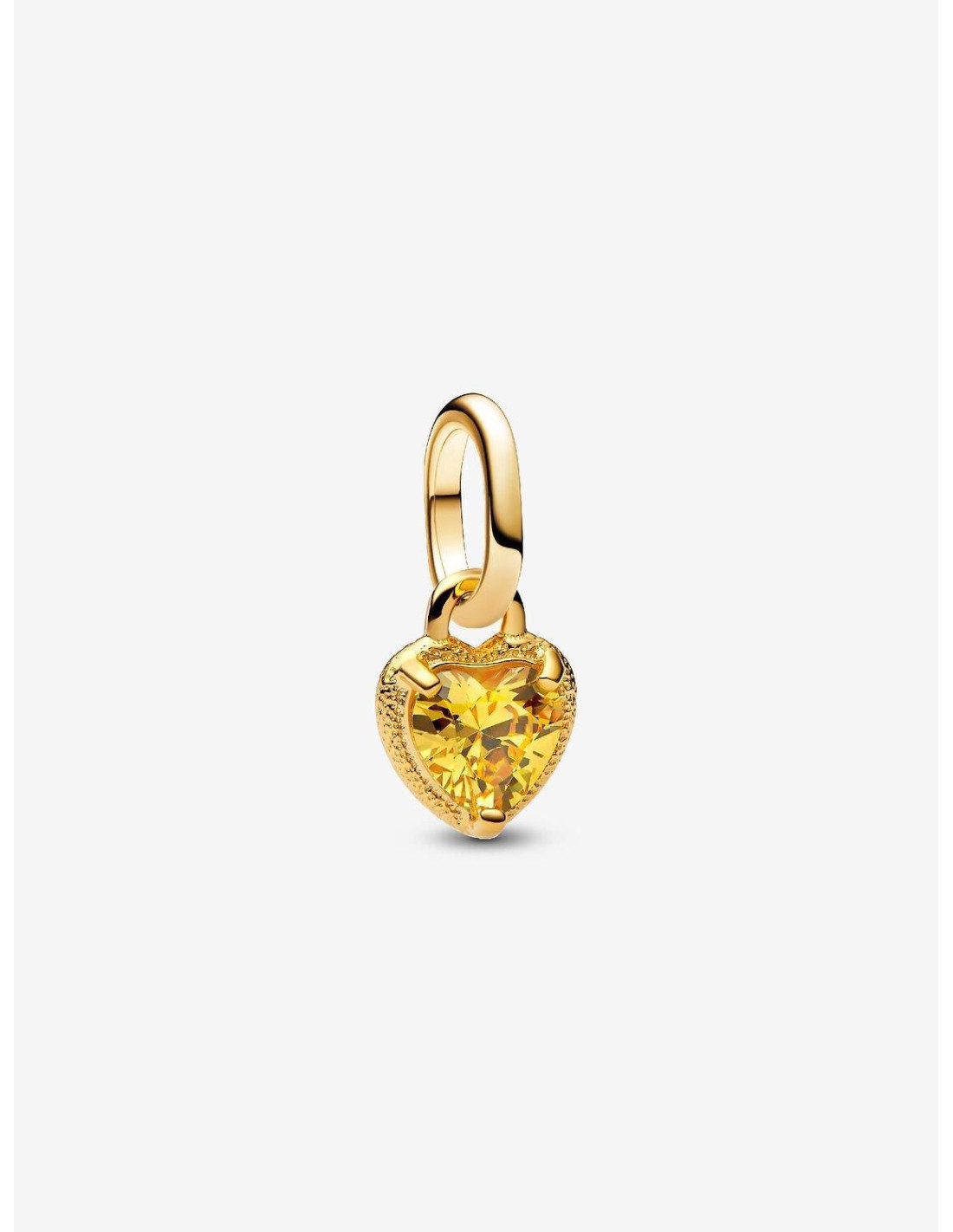 Celebra el amor con el Charm Mini Colgante Corazón de Pandora (ref. 763862C01). Elaborado en una aleación única de metales con un cálido recubrimiento en oro de 14k, este delicado charm presenta un corazón con una circonita cúbica amarilla en el centro, rodeado por un borde texturizado que simula un corazón palpitante. Compatible con las colecciones Pandora Moments y Pandora ME, es el detalle perfecto para añadir un toque de elegancia y significado a tu pulsera.
