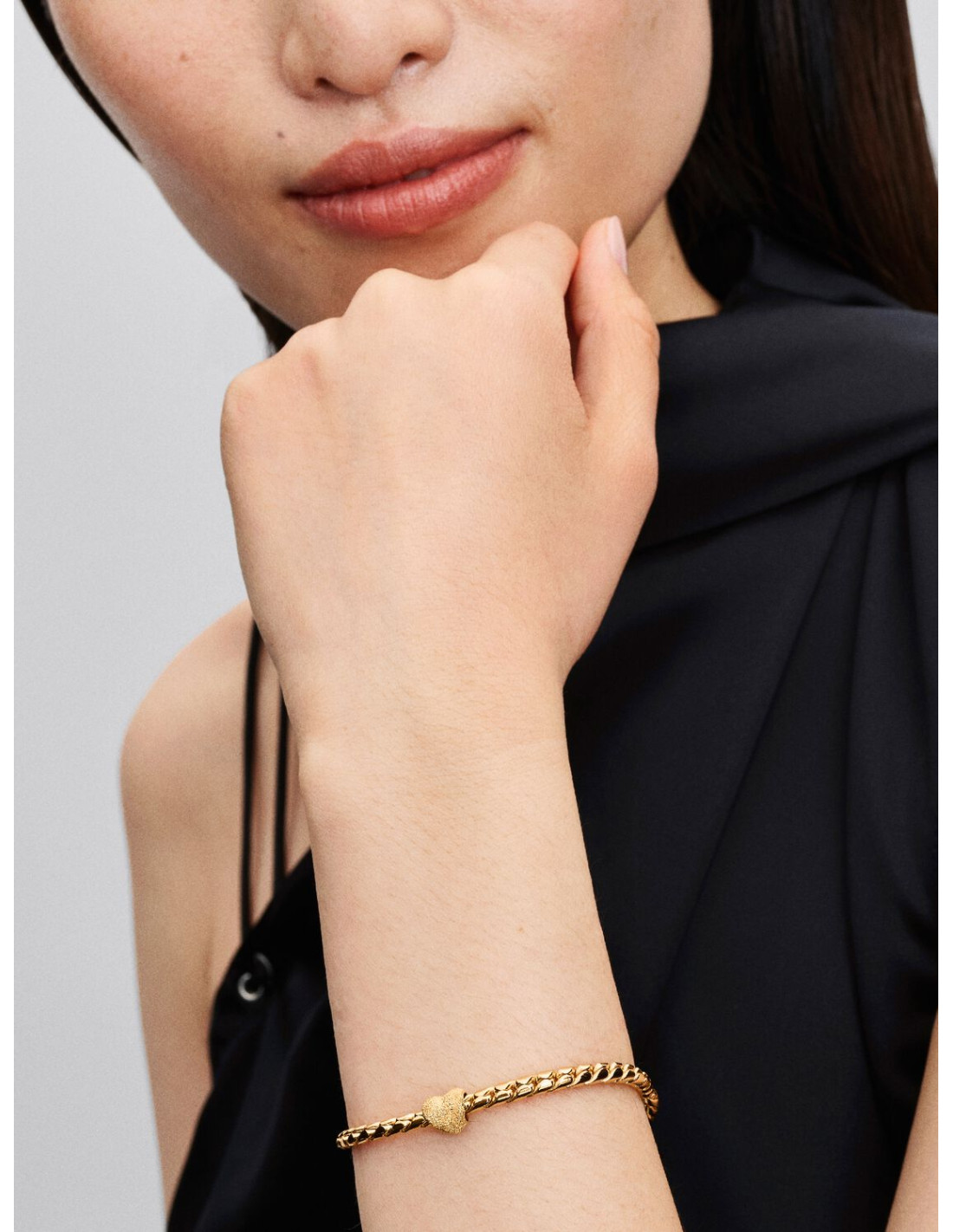 Charm mini corazón texturizado (Be Love) Pandora en plata de ley bañada en oro de 14 k, con diseño tipo “diamond‑point”, ideal para añadir un toque de amor sutil a tu pulsera Moments.