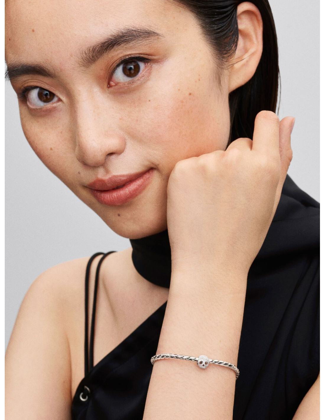Charm mini calavera textura Pandora en plata de ley con acabado tipo diamond-point. Un detalle audaz y simbólico para tu pulsera Moments.