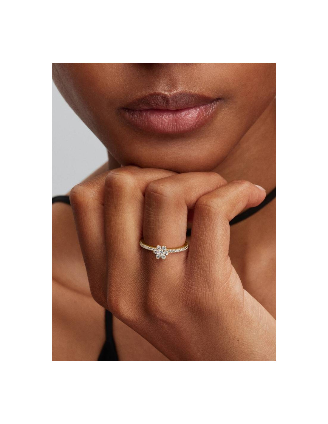 Anillo Pandora Flor Dorada Brillante